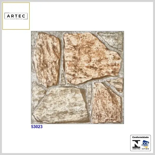 Piso cerâmico esmaltado com acabamento granilhado e bordas não retificadas. Indicado para revestimento de pisos em áreas internas ou cobertas.