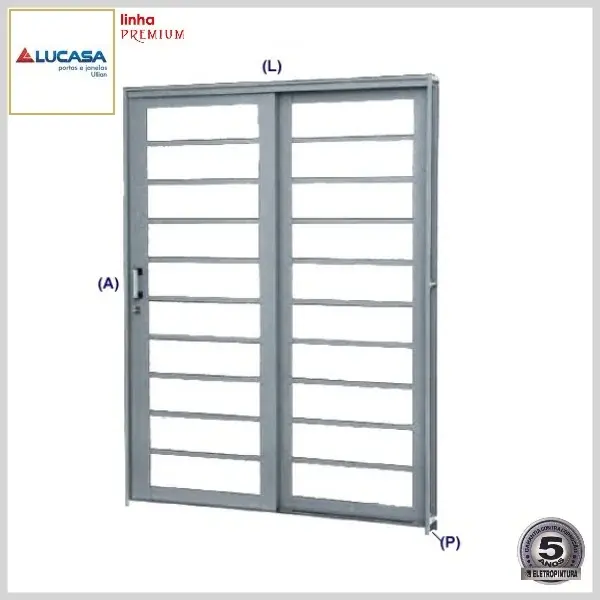 Porta de Correr Lateral (Aço, Linha Premium) 2Fls.Travessa c/Tetra - Direita, Med: 213[A] x 160[L] x 13,0[P] cm - Lucasa