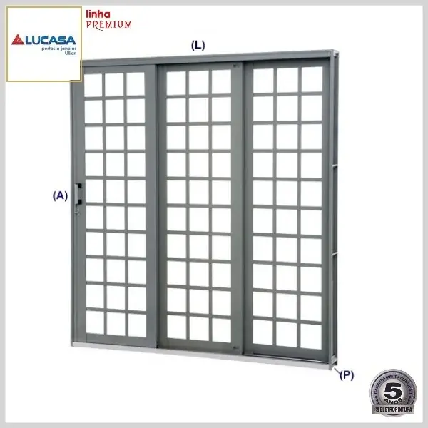 Porta de Correr Lateral (Aço, Linha Premium) 3Fls.Quadrada c/Tetra - Direita, Med: 213[A] x 150[L] x 14,0[P] cm - Lucasa
