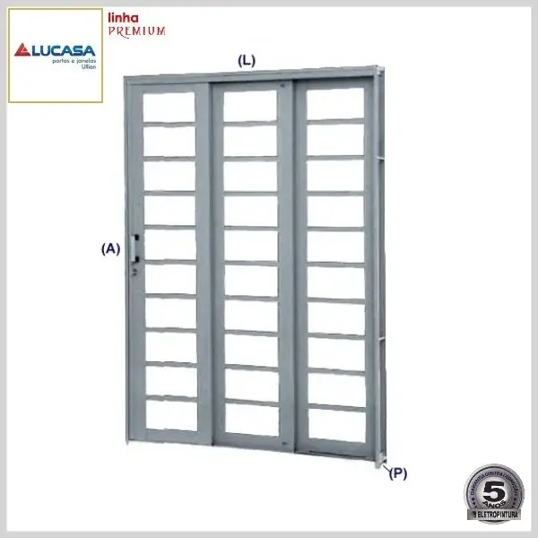 Porta de Correr Lateral (Aço, Linha Premium) 3Fls.Travessa c/Tetra - Direita, Med: 213[A] x 150[L] x 14,0[P] cm - Lucasa