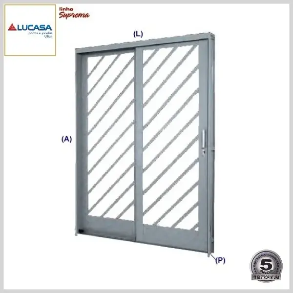 Porta de Correr Lateral (Aço, Linha Suprema) 2 Fls. Diagonal - Direita, Med: 214[A] x 160[L] x 14,0[P] cm - Lucasa