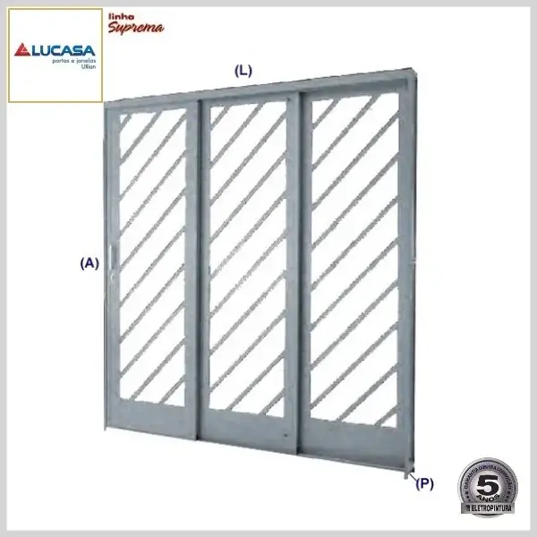 Porta de Correr Lateral (Aço, Linha Suprema) 3 Fls. Diagonal - Direita, Med: 213[A] x 150[L] x 14,0[P] cm - Lucasa