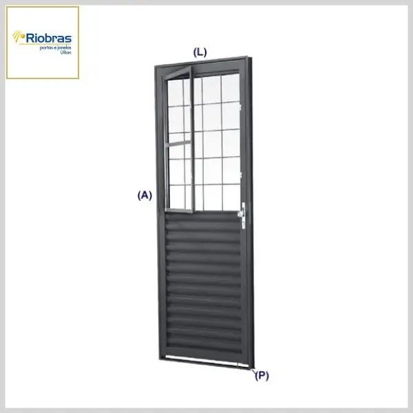 Porta de Giro (Aço) Folha Mista Postigo c/Grade Quadrada - Direita, Med: 215[A] x 80[L] x 6,5[P] cm - Riobras