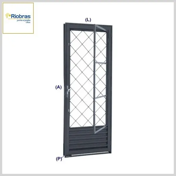 Porta de Giro (Aço) Folha Postigo c/Grade Xadrez - Direita, Med: 215[A] x 80[L] x 6,5[P] cm - Riobras