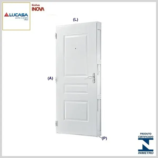 Porta de Giro (Aço Galv, Linha Inova) Folha 3 Tabuleiros c/Olho Mágico - Direita, Med: 215[A] x 96[L] x 12,0[P] cm - Lucasa