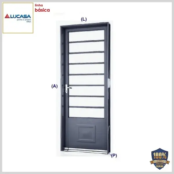 Porta de Giro (Aço, Linha Básica) Folha c/Travessa +Almofada - Direita, Med: 215[A] x 85[L] x 6,5[P] cm - Lucasa