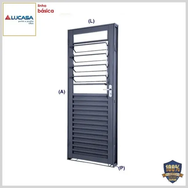 Porta de Giro (Aço, Linha Básica) Folha Mista c/Basculante - Direita, Med: 215[A] x 85[L] x 6,5[P] cm - Lucasa