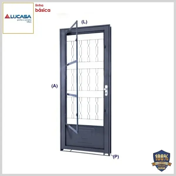 > Porta de Giro (Aço, Linha Básica) Folha Postigo c/Grade Mosaico
