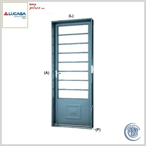 Porta de Giro (Aço, Linha Plus-Pro) Folha c/Travessa +Almofada - Direita, Med: 215[A] x 80[L] x 6,5[P] cm - Lucasa