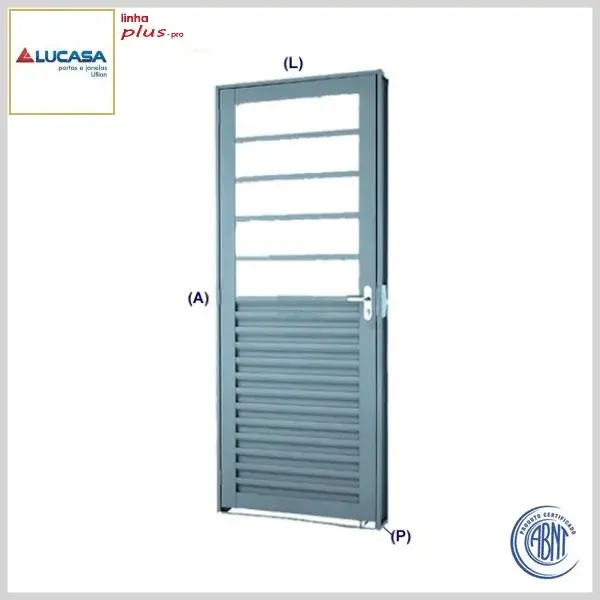 Porta de Giro (Aço, Linha Plus-Pro) Folha Mista c/Travessa - Direita, Med: 215[A] x 75[L] x 6,5[P] cm - Lucasa