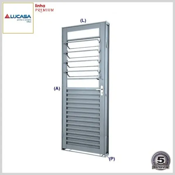 Porta de Giro (Aço, Linha Premium) Folha Mista c/Basculante - Direita, Med: 215[A] x 86[L] x 6,5[P] cm - Lucasa