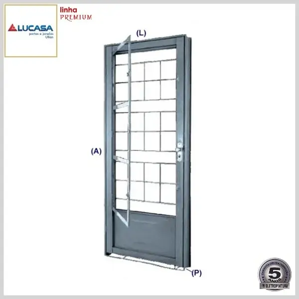 Porta de Giro (Aço, Linha Premium) Folha Postigo c/Grade Quadrada - Direita, Med: 215[A] x 90[L] x 6,5[P] cm - Lucasa