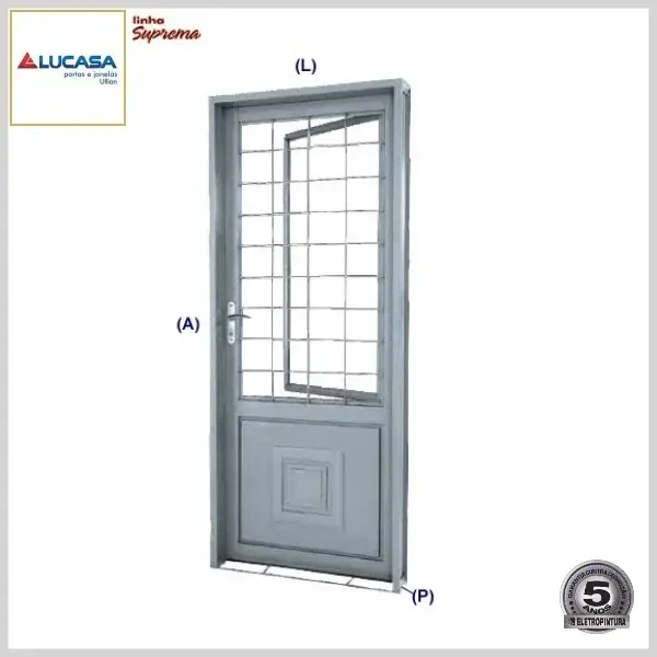 > Porta de Giro (Aço, Linha Suprema) Folha Postigo Almof.+Grade Quadrada