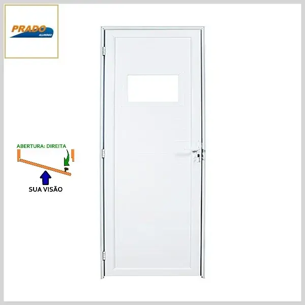 Porta de Giro Boldie Alumínio Branco Lambri c/Visor - 2.15 x 0.60 x 6.0cm (ab.dir) - Prado