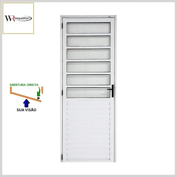 Porta de Giro Fixa Alumínio Branco c/Vidro - Abert.Dir : Alt 2.10m x Larg 80cm - WResquadriart