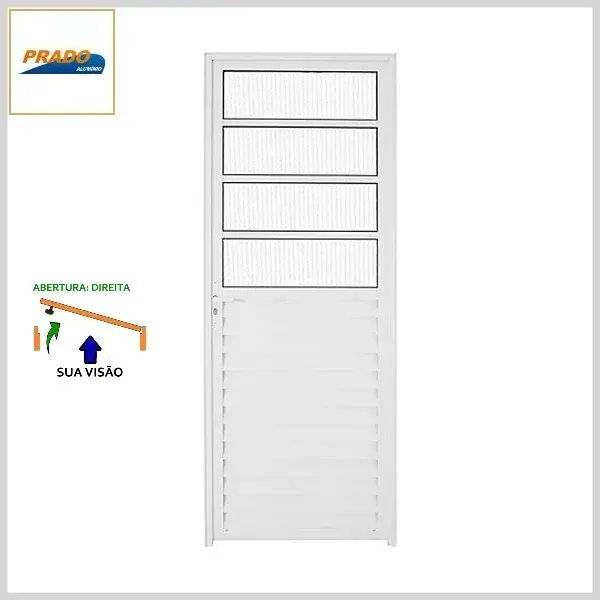 Porta de Giro Malta Alumínio Branco 4 Vidros Fixos - 2.10 x 0.80 x 6.0cm (ab.dir) - Prado