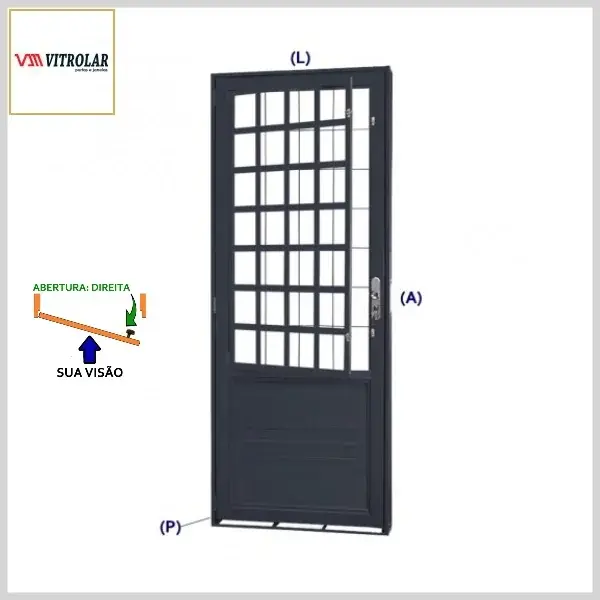 Porta de Giro Premium c/Postigo e Grade Quadriculados (Aço, Abert.Direita) - Medidas[AxLxP]: 215x85x12,0cm - Vitrolar