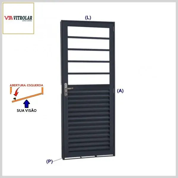 Porta de Giro Premium Laminada Horizontal Mista (Aço, Abert.Esquerda) - Medidas[AxLxP]: 215x85x12,0cm - Vitrolar