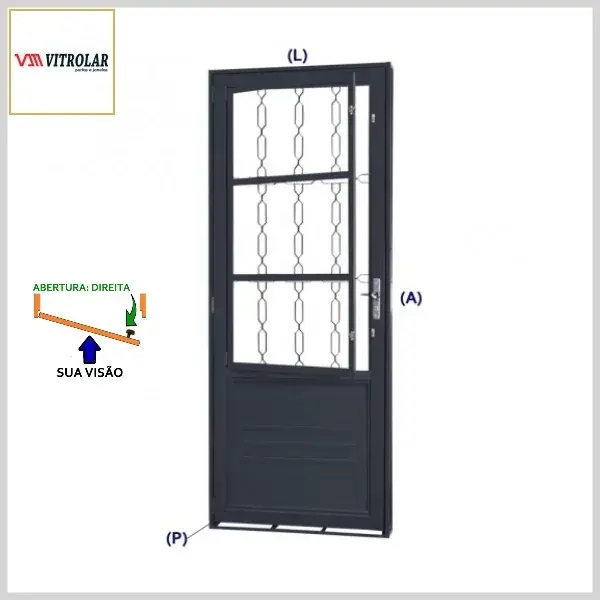 Porta de Giro Premium Postigo c/Grade Elo (Aço, Abert.Direita) - Medidas[AxLxP]: 215x85x12,0cm - Vitrolar