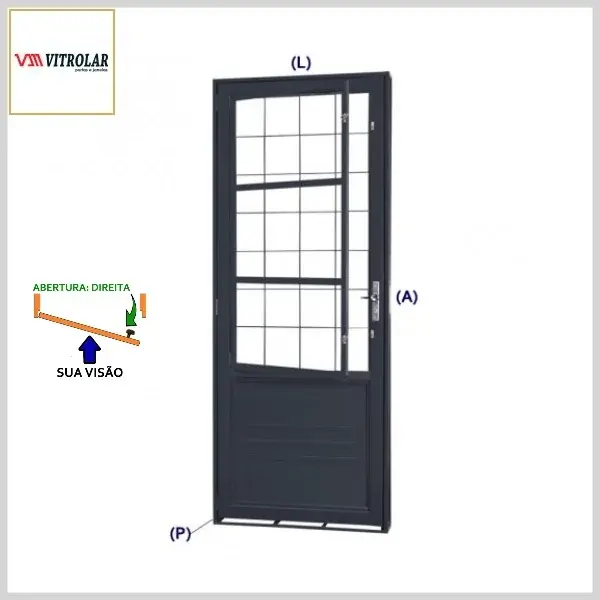 Porta de Giro Premium Postigo c/Grade Quadriculada (Aço, Abert.Direita) - Medidas[AxLxP]: 215x85x12,0cm - Vitrolar