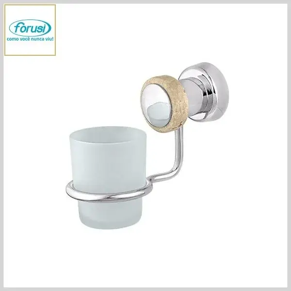 Porta Escova de Dentes 5011 Saturno Travertino Luxo Vidro c/Cromado - Caixa c/1 peça - Forusi