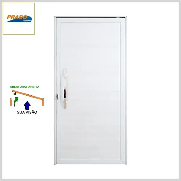 Porta Pivotante Boldie Alumínio Branco Lambri c/Puxador - 2.15 x 0.90 x 6.3cm (ab.dir) - Prado