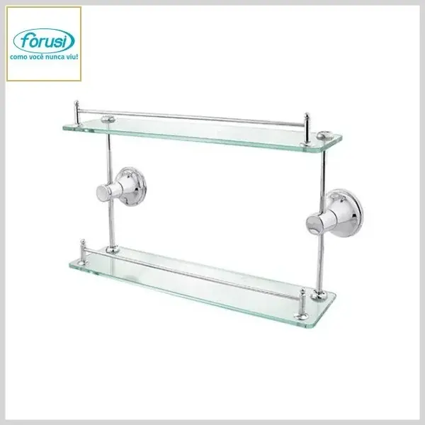 Porta Shampoo Duplo 5009 Galiza Luxo Vidro c/Cromado - Caixa c/1 peça - Forusi