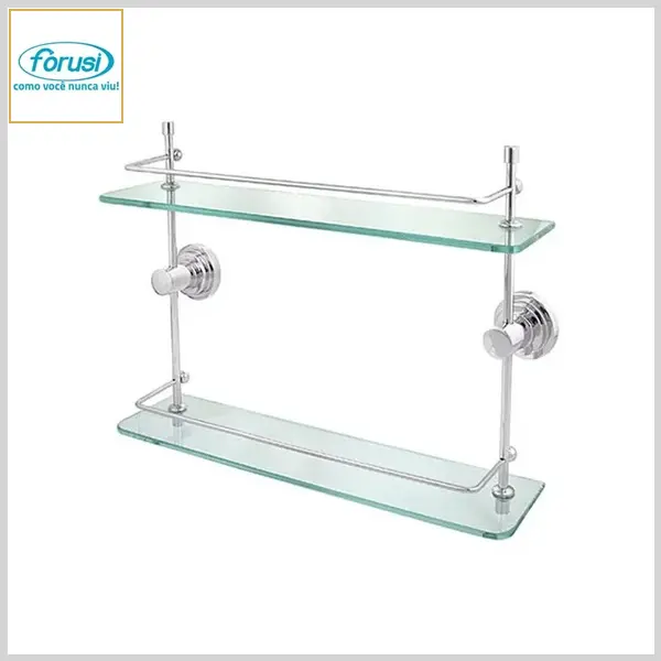 Porta Shampoo Duplo 5009 Parthenon Luxo Vidro c/Cromado - Caixa c/1 peça - Forusi