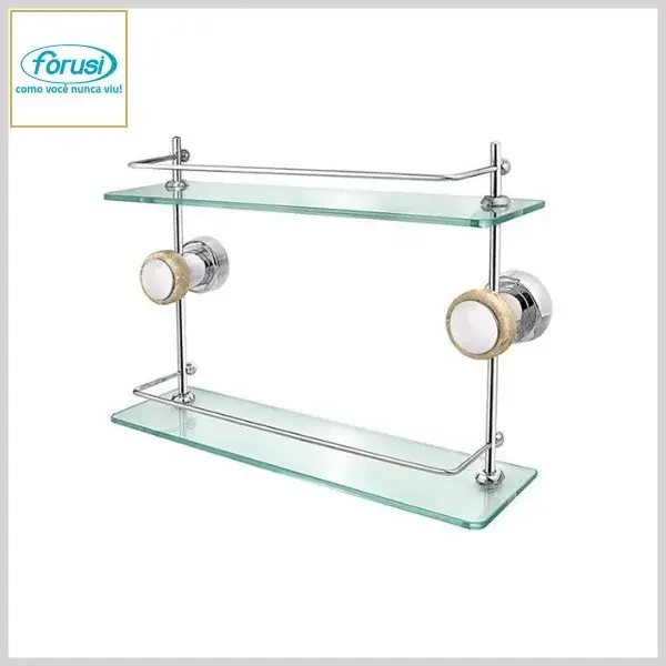 Porta Shampoo Duplo 5009 Saturno Travertino Luxo Vidro c/Cromado - Caixa c/1 peça - Forusi