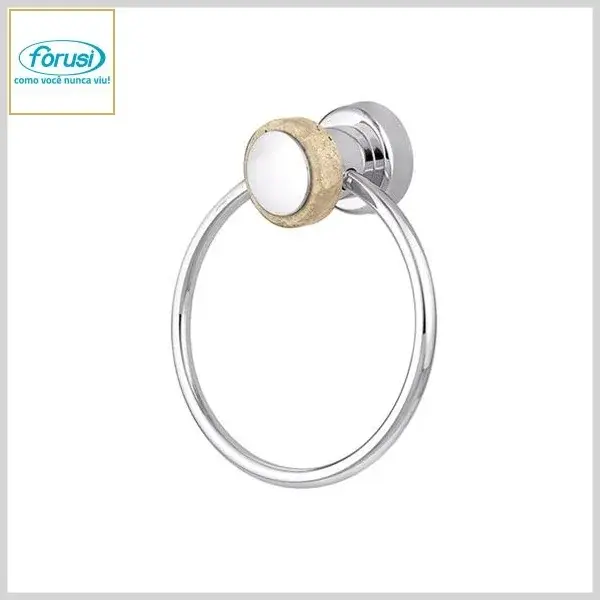 Porta Toalha de Rosto 5003 Saturno Travertino Luxo Argola Cromado - Pack c/1 un - Forusi