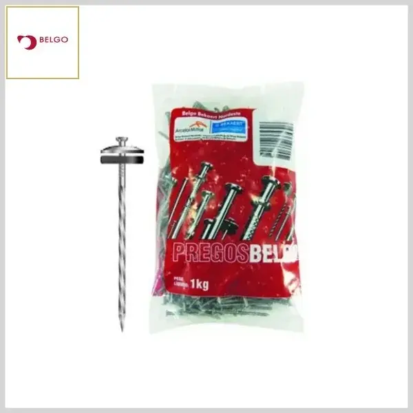 Os pregos telheiro galvanizado da BELGO possuem corpo tipo Ardox, arruela metálica e borracha flexível de vedação na cabeça. São 100% resistentes à corrosão. A borracha flexível de vedação não resseca com o decorrer do tempo. O formato do corpo ardox fixa a telha com muita segurança, impedindo o seu despregamento do telhado.