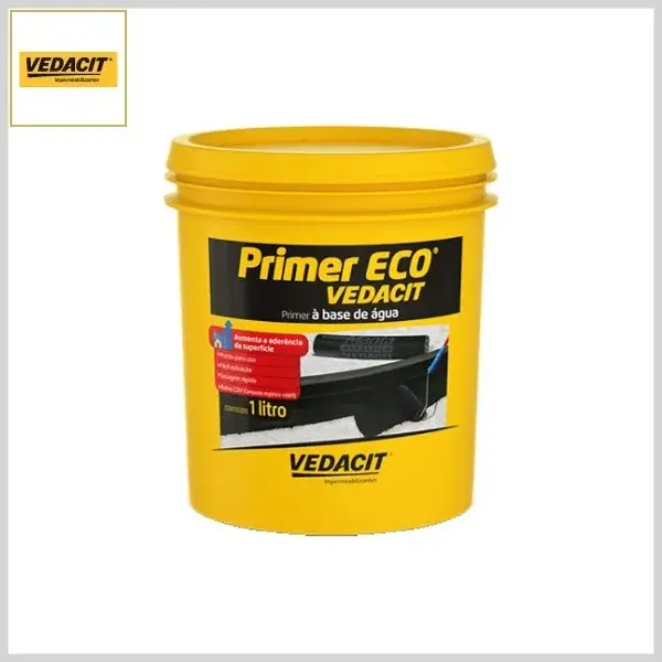 Primer Asfáltico Primer Eco Vedacit Base Água, 1lt - Pote Plástico - Vedacit