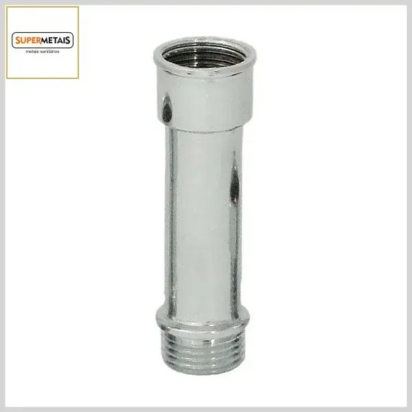 Produto com corpo em metal cromado, sendo indicado para prolongamento de pontos de distribuição de água para torneiras ou canos de chuveiros instalados em paredes. Possui bitolas de 1/2 e 3/4 de polegada (entrada e saída).