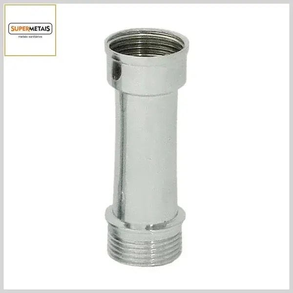 Produto com corpo em metal cromado, sendo indicado para prolongamento de pontos de distribuição de água para torneiras ou canos de chuveiros instalados em paredes. Possui bitolas de 1/2 e 3/4 de polegada (entrada e saída).