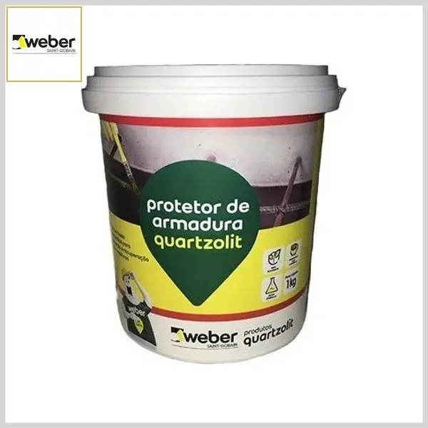 Protetor de armadura cimentício Quartzolit é uma pintura em pasta, monocomponente à base de polímeros e cimento portland, destinada à proteção de armaduras dispostas nas regiões submetidas à atividades de reparos estruturais decorrentes do processo de corrosão. É indicada para proteção de armaduras de espera e para pintura de armaduras em sistemas de reparos estruturais.
