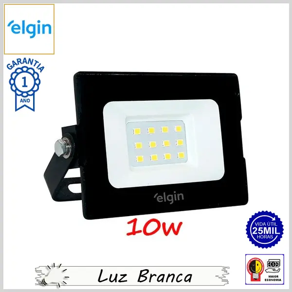 Refletor Led Bivolt PowerLed Uso Externo Proteção IP65 6500K (Luz Branca) - Preto - 10W x 550 lumens - Elgin