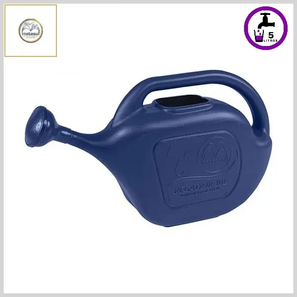 Produto confeccionado em plástico polietileno de alta densidade (recipiente e crivo), sendo indicado para regar plantas em floreiras, vasos e jardins. Fabricado com capacidades de 5, 6, 10 e 12 litros, nas cores azul, preto, verde e vermelho.