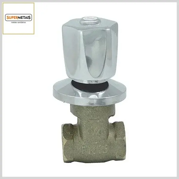 Produto com corpo metálico e volante com acabamento cromado, indicado para controle de fluxo de água quente ou fria em redes de distribuição e alimentação hidráulicas residenciais, comerciais ou industriais.