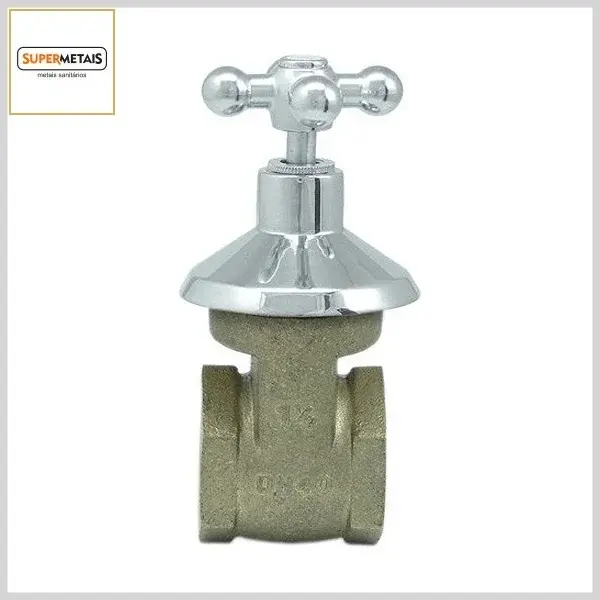 Produto com corpo metálico e volante com acabamento cromado, indicado para controle de fluxo de água quente ou fria em redes de distribuição e alimentação hidráulicas residenciais, comerciais ou industriais.