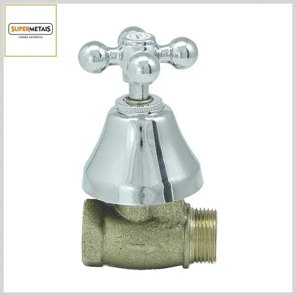 Produto com corpo metálico e volante em plástico Abs cromado, indicado para controle de fluxo de água quente ou fria em pontos de alimentação de chuveiros, duchas, banheiras ou equipamentos hidráulicos equivalentes.