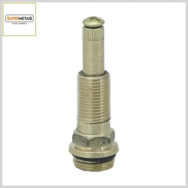 Produto com corpo metálico amarelo, indicado para substiuição de mecanismos de vedação de registros de pressão para chuveiros, duchas de banho e equipamentos hidráulicos equivalentes. Pistão compatível com estria Deca e similares.