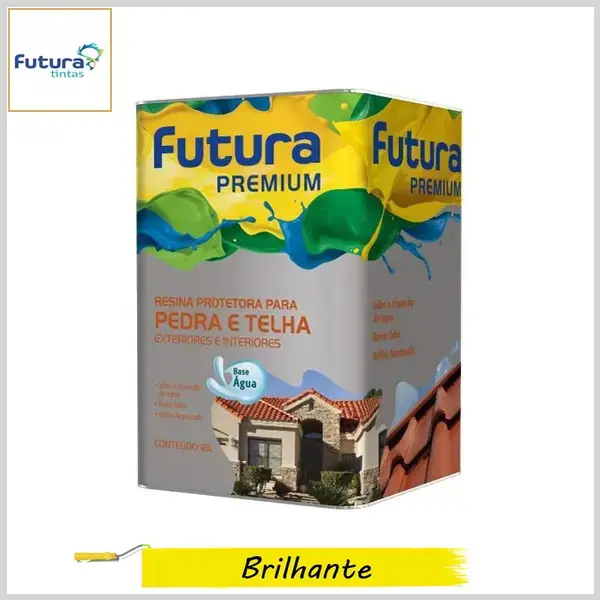 A Resina Protetora Pedra e Telha Futura Premium é um produto à base de água, indicado para proteger e decorar superfícies porosas tais como telhas de barro, telhas de fibrocimento, pedras naturais, concreto aparente, tijolo aparente e cerâmicas. Possui acabamento brilhante e inibe a absorção de água, com baixíssimo odor na aplicação.