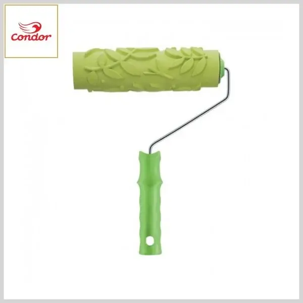 ROLO CONDOR 971 com suporte (garfo) é fabricado com borracha texturizada na côr verde claro. Com 18cm de largura, nos modelos folhas, criativo e radical, é indicado para a criação de efeitos decorativos sobre texturas, massas ou gel envelhecedor.