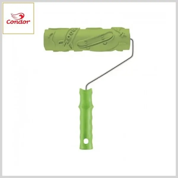 ROLO CONDOR 971 com suporte (garfo) é fabricado com borracha texturizada na côr verde claro. Com 18cm de largura, nos modelos folhas, criativo e radical, é indicado para a criação de efeitos decorativos sobre texturas, massas ou gel envelhecedor.