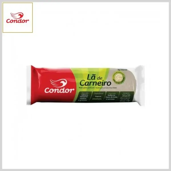 ROLO CONDOR 953 é fabricado com lã natural de carneiro com 23mm de altura na côr branca. Com 23cm de largura, é ideal para pinturas de fino acabamento em superfícies rugosas.