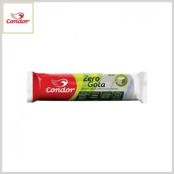 ROLO CONDOR 959 Zero Gota é fabricado com lã especial de poliamida com 9mm de altura na côr branca, com listras azuis. Com 23cm de largura, possui boa capacidade de retenção de tinta, reduzindo o respingamento e é ideal para pinturas de fino acabamento em superfícies lisas.