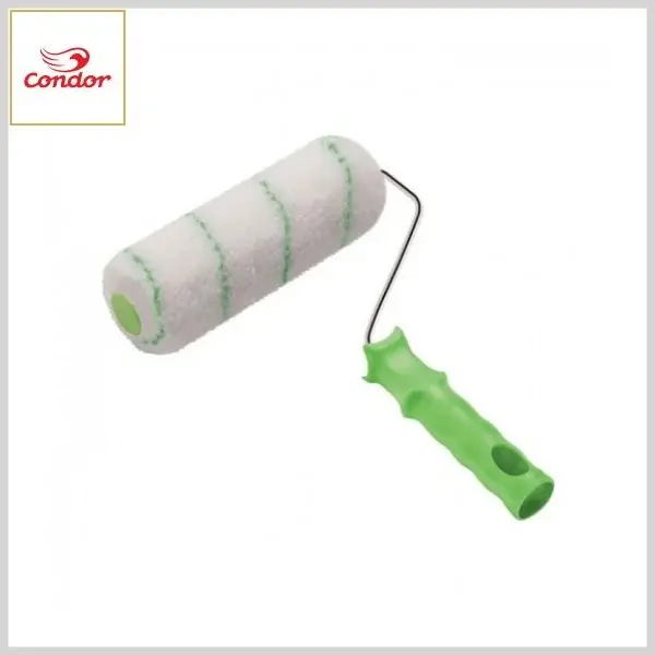 ROLO CONDOR 2012/15 com suporte (garfo) é fabricado em lã microfibra com altura de 18mm na côr branca, com listras verdes. Pinta três 3x mais se comparado com outros rolos, além de não respingar. Com 15cm de largura, é ideal para pinturas de superfícies semi-rugosas.