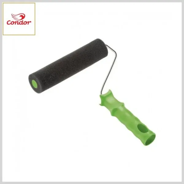 ROLO CONDOR 975/15 com suporte (garfo) é fabricado em espuma 100% de poliéster na côr cinza. Com 15cm de largura, é ideal para pinturas de superfícies metálicas e madeiras lisas com tintas látex, acrílicas, à óleo, esmaltes e vernizes.
