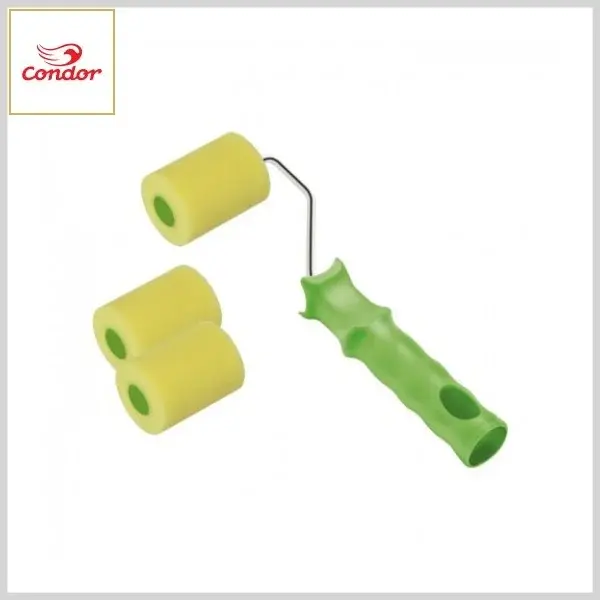 ROLO CONDOR 976/5R com suporte (garfo) e 2 refis, é fabricado em espuma 100% de poliéster na côr amarela. Com 5cm de largura, é ideal para pinturas de superfícies metálicas e madeiras lisas com tintas látex, acrílicas, à óleo, esmaltes e vernizes.