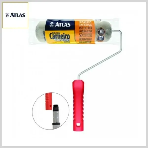 Rolo+Garfo de Pintura: Lã Mista (Carneiro/Polyester) 22mm, Roscável ref.2228 - Largura do Rolo: 23 cm - Atlas